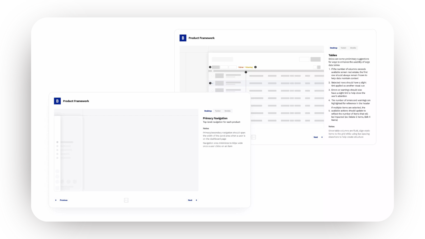 Armed with a storyboard and user insights, we transitioned into creating low-fidelity prototypes for user testing. This iterative process, backed by regular feedback from customer partners, led to the development of a scalable design system to ensure consistency across products.